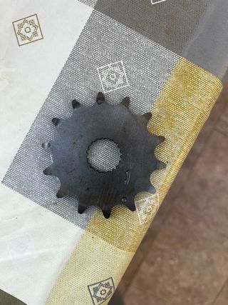 Piñón de ataque para motocicleta. Pieza metálica con dientes. - Material: Metal. - Diseño: Con 17 dientes.