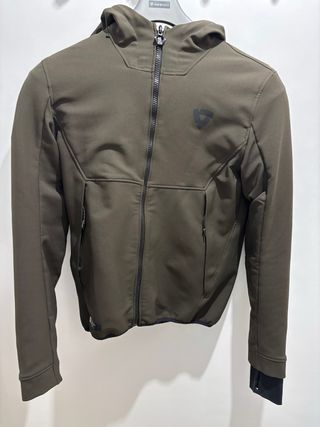 Chaqueta Rev'it! Parabolica en color verde militar talla M. Diseño informal y funcional. - Uso urbano - Capucha integrada. - Cierre frontal con cremallera. - Bolsillos laterales con cremallera. - Logo de Rev'it! en el pecho. - Con todas las protecciones originales en perfecto estado, espaldera hombros y coderas - Tejido antiabrasion - Clase AA