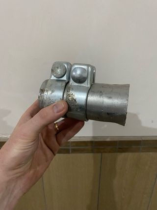 Conector o empalme para tubo de escape. - Diametro interior 54.5mm - Incluye tornillos y tuercas para sujeción.