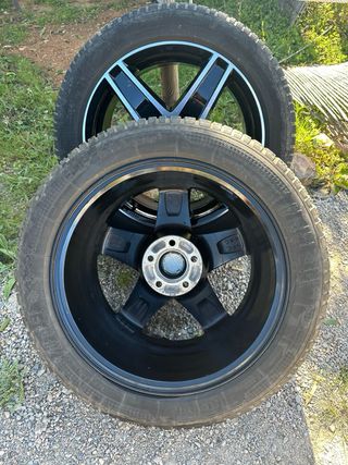 Juego de llantas y neumáticos. - Diseño de 5 radios dobles. - Acabado negro brillante con detalles pulidos. - Marca RONAL en el centro.