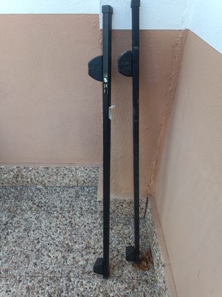 Se venden dos barras portaequipajes de la marca Cruz. Son negras y parecen estar en buen estado. - Ideales para transportar equipaje en el techo del coche. - Fácil instalación. - Marca Cruz.