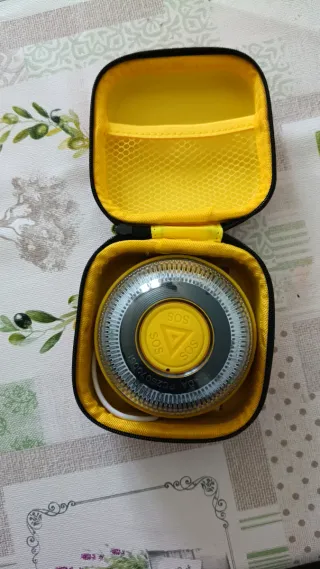 Baliza de emergencia con función SOS. Incluye un estuche protector y un cable de carga. V16 con geolocalizacion - Diseño compacto y portátil. - Estuche de color amarillo brillante. - Cable blanco para carga.