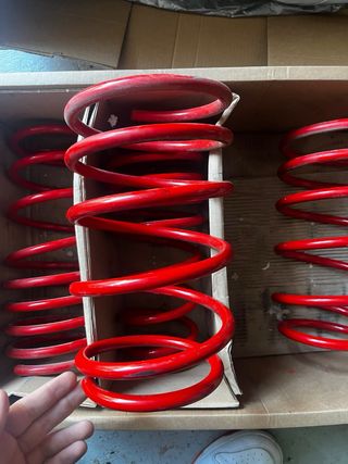Muelles Cobra para Toyota Celica de sexta generación, T20. Los muelles se has utilizado 2 meses y unos 2000km, tengo la caja original. Van de maravilla, pero he montado suspension roscada y ya no los necesito. Se pueden homologar sin problema. - Color rojo. - Diseñados para mejorar la suspensión.