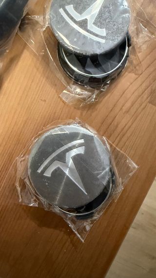 Set de 20 tapas para buje de rueda de Tesla. Son de color gris con el logo de la marca. - Material: Plástico. - Color: Gris. - Logo: Tesla.
