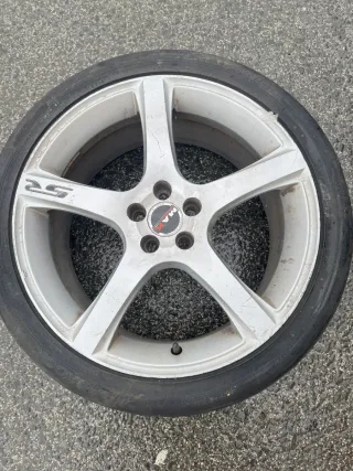 Juego de llantas de aleación con un diseño deportivo de 5 radios. El centro de la llanta tiene un logo circular. - Diseño de 5 radios. - Acabado plateado. - Logo central visible. -Medida 225/45R 18 95V