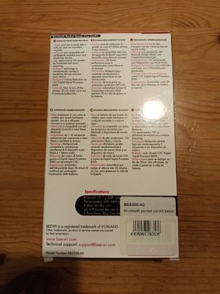 Del tamaño de una targeta de crédito. Compatible con todos los accesorios de música bluetooth. Altavoces de 1W. Puede conectar 2 dispositivos simultáneamente. Reducción de ruido de fondo. Temporizador de apagado. Incluye funda de soporte. Está nuevo, nunca usado.