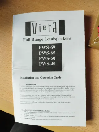 Altavoces Vieta PWS-40 de 4 pulgadas, Full Range, 120 vatios. - Incluye manual de instalación y operación. - Caja original. - Pegatina Vieta.