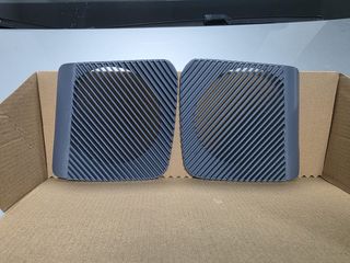 Juego de dos tapas para altavoces de Volkswagen T4. Diseñadas con un patrón de líneas diagonales. - Color gris oscuro. - Material resistente. - Impreso 3D