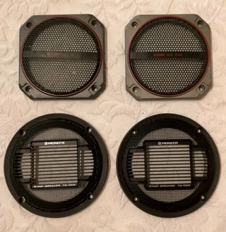 LOTE TAPAS DE ALTAVOVES VINTAGE. 2 TAPAS PIONER 2-WAY "SPEAKER TS-1002 DE 13cm de diámetro" y OTRAS 2 "TAPAS SCANER DUSK CONE DE 11x11cm de lado". REGALO RADIO PHILIPS ANTIGUA. DESCONOZCO SI FUNCIÓNA, PERO SI LA TENGO GUARDADA SERA QUE SI, MAS CABLE DE ANTENA ANTIGUO. MIRA RESTO DE MI VARIADO PERFIL. GRACIAS