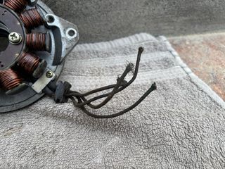 Estator para Yamaha SR 250. Bobinas del alternador. Funciona pero tiene los conectores cortados. Ideal para sustituir uno averiado y soldarle o empalmar los conectores.