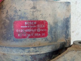 Alternador de la marca Bosch 0120489917 Descripción: Corriente de carga alternador [A]:55 Tensión [V]: 14 Sentido de giro a la derecha (horario) Modelo de alternador: excl. bomba vacío Tipo de sujeción: Brazo oscilante simple extensión de reparación recomendada: correas trapezial, poli V Longitud [mm]: 158,5 Número de artículo: 0 120 489 917 Marca: BOSCH Posibilidad de entrega en mano en Huesca o Zaragoza (en Zaragoza preguntar por fechas).
