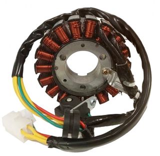 Alternador de corriente, también denominado estator, bobinado, encendido o magneto de voltaje. Es uno de los componentes que integran el sistema eléctrico de la Daelim, junto la regulador, la batería, fusibles y cableado. Está compuesto por las bobinas, la parte metálica central, los cables, conectores y el pickup. Este recambio se debe instalar en estos modelos de motocicletas Daelim: VJ 125 Fi Roadwin (2008-2016). Es una moto deportiva sin carenado o naked, de inyección. VL 125 Fi Daystar (2008-2021). Moto de tipo custom, con menos potencia que la Roadwin 125.
