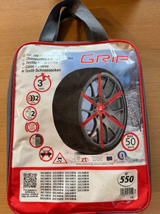 Cadenas textiles GRIP para nieve, modelo 550. Son una alternativa a las cadenas metálicas tradicionales. compra nueva 35 - Incluye bolsa de transporte. - Indicadas para uso en nieve y hielo. - Velocidad máxima recomendada: 50 km/h. - Compatibles con ABS y ESP.