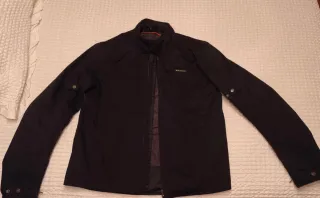 Chaqueta de moto BEARING de color negro, diseñada para ofrecer protección contra el viento y el agua. - Cierre frontal con cremallera. - Cuello alto. - Bolsillos frontales. - Puños ajustables. -Protecciones en espalda, codos y hombros