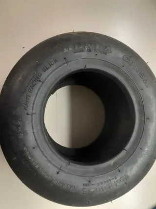 Neumático para kart de la marca Kenda, modelo Corsa. - Tipo: Kart Racing Slick. - Fabricado en Taiwán. - Medida: 10x4.50-5. - Presión máxima de inflado: N.H.S.