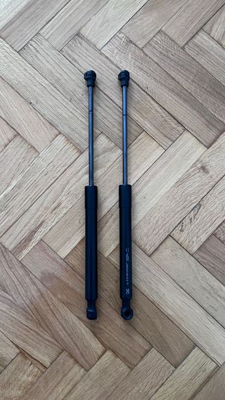 Par de amortiguadores para el capó de un Mercedes Citan. Están en perfecto estado de uso con unos 25 usos. - Piezas de repuesto originales. - Material: Metal. -Color : Negro