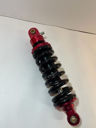 Amortiguador de repuesto para pit bike con una longitud de 260mm. De tornillo a tornillo 26cm - Color rojo del muelle. - Montaje con tornillos y tuercas.