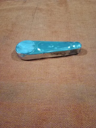 Protector para el amortiguador de una Vespa 150. - Material metálico con acabado azul. - Diseño alargado y curvo. Año 1965