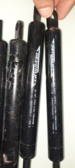 Amortiguadores de maletero NUEVOS. Son dos amortiguadores de gas de 450 Newton. Ideales para portones traseros. PRECIO POR LOS 2 amortiguadores. - Fuerza de 450 Newton. - Para portón trasero. Extendido 410 plegado 245 desplaza 165