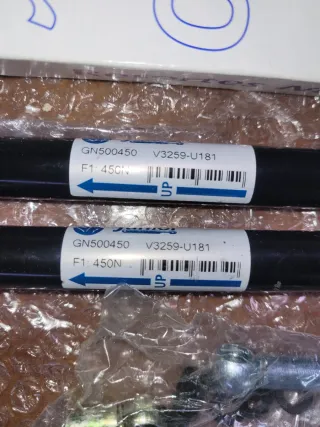 Par de amortiguadores para el portón del maletero. 500mm 450N - Marca: Junior - La última foto muestra una lista de vehículos compatibles. - Incluye tornillería de montaje. Audi citroen fiat Honda Hyundai kia Mercedes Nissan opel Peugeot Renault