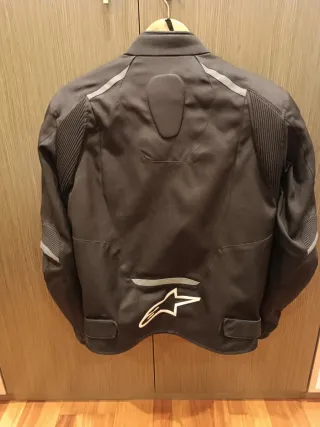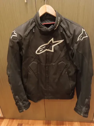 Chaqueta de moto Alpinestars en color negro. - Diseño deportivo. - Cierre de cremallera frontal. - Logos de Alpinestars en blanco. -Talla M. Mido 170 y peso 70 kg para que os hagáis una idea.