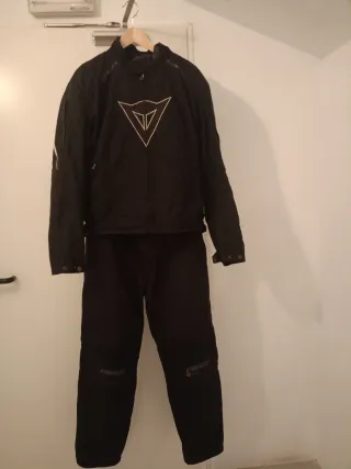 Conjunto de chaqueta y pantalón de cordura de la marca Dainese,se une medianamente cremallera,en bues estado el pantalón tiene poco uso la chaqueta está más usada. La chaqueta tiene forro interior desmontable y protecciones en codos y hombros Tanto pantalón como chaqueta son talla 56