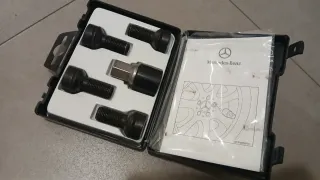 Juego de tornillos antirrobo originales de Mercedes-Benz para llantas de aleación ligera. - Referencia: A 001 990 1607 - Diseñados para llantas de aleación. - Incluye 4 tornillos y una llave de seguridad. Validos para clase A,B,CLA,GLA,EQA Y mas modelos