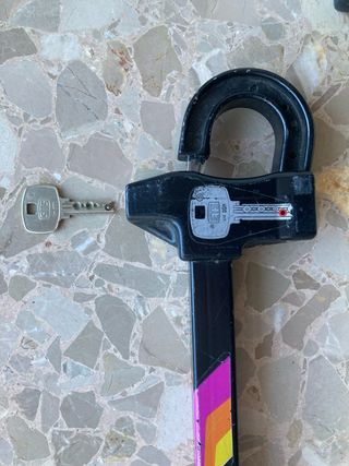 Anti-robo para freno de mano de la marca Artago. Está en buenas condiciones. - Incluye 1 llave, se precia con un poco de oxido.