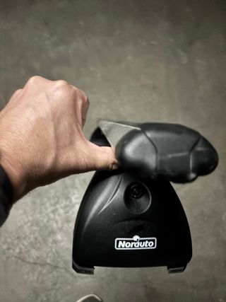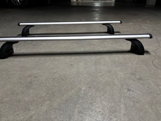 Juego de barras de techo de aluminio de la marca Norauto. -Patas con cierre antirrobo incluidos - Material: Aluminio - Marca: Norauto - Unico Dueño -Adaptable a vehículos con railes incluidos en el techo