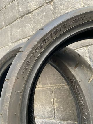 Neumático de moto Bridgestone BT016. Estan como nuevos sin deformaciones ni desgaste - Medida delantera: 120 70 17 - Medida trasera: 180 55 17