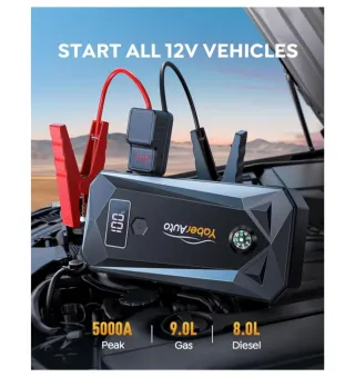 Arrancador de coche YaberAuto con alta potencia y gran capacidad. - 5000A de pico. - 21800mAh de capacidad. - Diseño moderno y compacto.