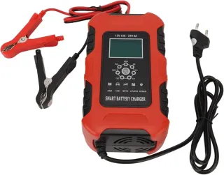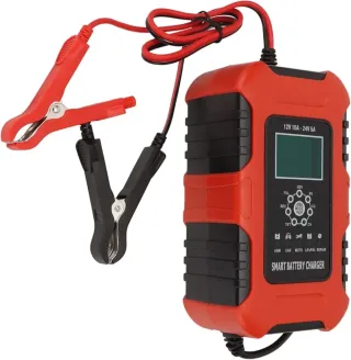 Cargador de batería inteligente para vehículos. - Voltaje: 12V 10A - 24V 5A. - Modos: FUL, DES, SS, REC, CC, CV, TET. - Compatible con baterías AGM, CAR, MOTO, LiFePO4. - Función de reparación de batería.