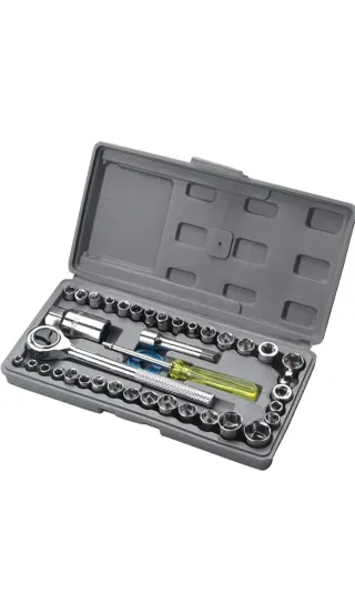 Set de llaves de vaso con carraca y accesorios. - Incluye carraca. - Variedad de vasos. - Estuche organizador.