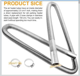 Tubo de escape flexible de acero inoxidable para generadores. Incluye dos abrazaderas para su fijación. - Longitud: 150 cm. - Material: Acero inoxidable. - Incluye 2 abrazaderas.