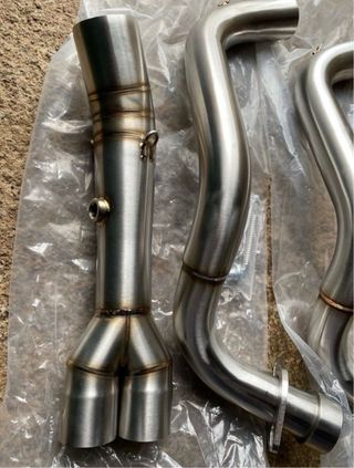 Conjunto de colectores de escape para Yamaha MT07 y Tracer 700. Fabricados en acero inoxidable pulido. - Diseño de alta calidad. - Incluye muelles de conexión.