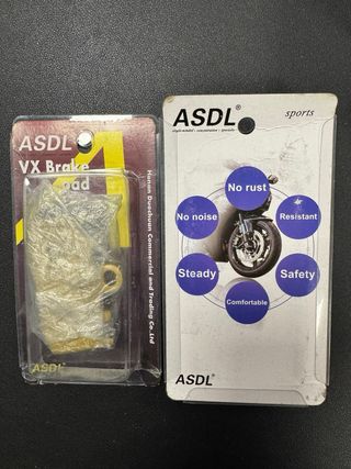 Pastillas de freno ASDL VX. - Marca: ASDL - Modelo: VX - Tipo: Pastillas de freno Honda: Wave, Biz, Dio, Click, Scoopy, Beat • Yamaha: Mio, Crypton, Nouvo, Fino • Suzuki: Address, Smash, Skydrive • Motocicletas chinas o genéricas de 110cc–150cc que usen pinza de freno delantera estándar tipo “Honda Wave”.