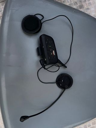 Intercomunicador para moto EJEAS, en buen estado. Incluye dos auriculares. - Dispositivo principal con botones. - Dos altavoces con almohadillas. - Antena integrada. - Sin cargador