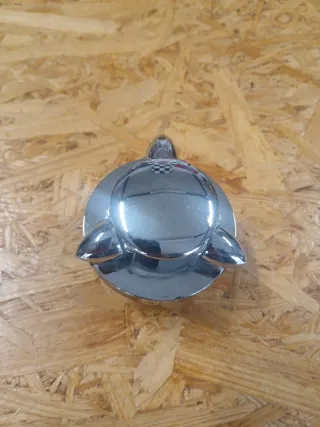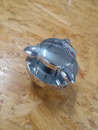 Tapón de gasolina con acabado cromado brillante. Su diseño le da un toque distintivo. - Material: Metal cromado. - Diseño: Con tres puntas. - Acabado: Pulido.