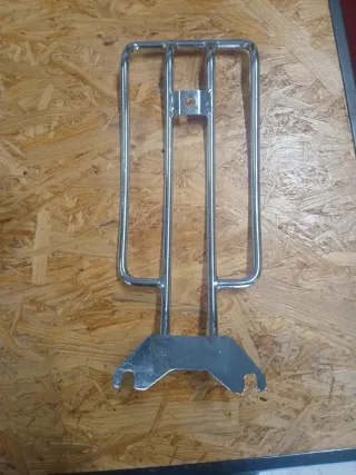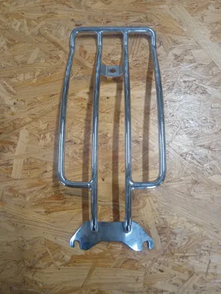 Parrilla portabultos cromada para motocicleta. Estaba montado en una Harley softail fatboy del 2008 - Diseño robusto y brillante. - Soporte metálico para equipaje.