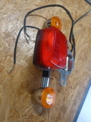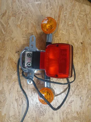 Conjunto de soporte de matrícula con piloto trasero e intermitentes. Estaba montado en una Kawasaki zephyr 750 - Piloto trasero de color rojo. - Dos intermitentes de color naranja.