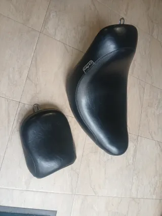 Conjunto de asiento y taco para moto de la marca Le Pera. Estaba montado en una Harley softail fatboy del 2008 - Asiento de cuero negro. - Taco de cuero negro.