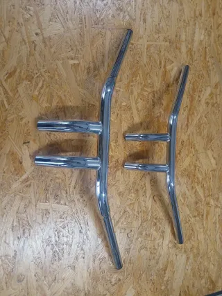 Manillar estilo cuelgamonos con acabado cromado. Estaba montado en una Harley softail Evo - Diseño curvo y elegante. - Fabricado en metal cromado.