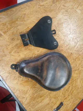 Asiento de estilo vintage con acabado en cuero. Para aplicaciones custom bobber chopper rat incluye muelles y base para sujetarlo - Diseño clásico. - Material de cuero envejecido.
