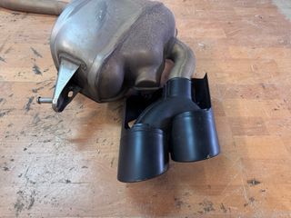 Sistema de escape deportivo para Porsche Macan. - Doble salida de escape en acabado negro mate. - Diseño agresivo y deportivo.