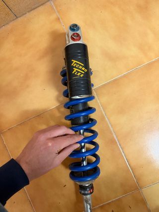 Amortiguador trasero para Yamaha WR con muelle Eibach. - Muelle de color azul. - Marca: Techno Flex Suspension. Para reacondicionar, estudiar bien las fotos. Una vez reacondicionado es un amortiguador excelente