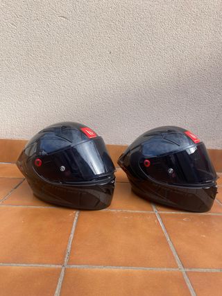 Dos cascos de moto MT Helmets modelo KRE+. - Color negro brillante. - Visera oscura. - Diseño deportivo. -Talla XS -Regalo 1 visera transparente