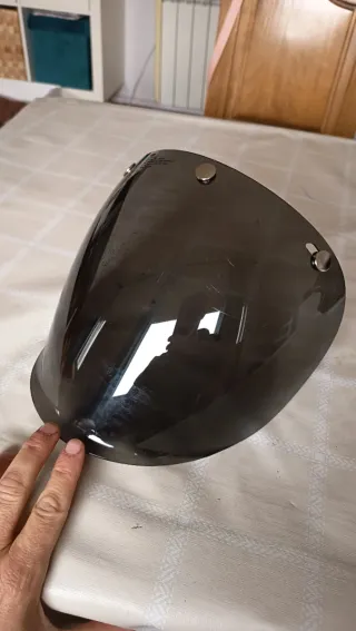 Visera burbuja ahumada para casco abierto, se instala con tres broches. Arañada, véase las fotos