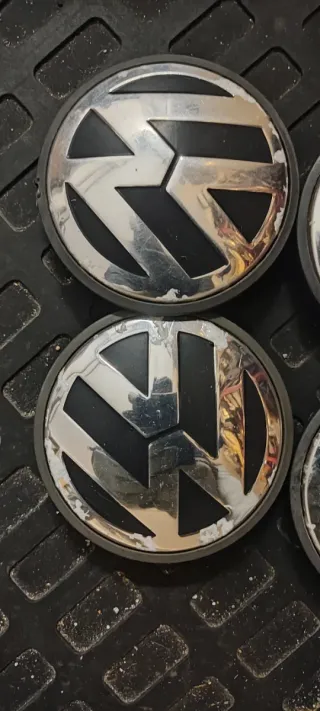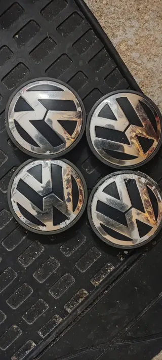 Tapas de buje para Volkswagen Touareg. El lote incluye 4 unidades. - Diseño con logo Volkswagen. - Acabado plateado y negro.