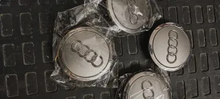 Juego de 4 tapacubos para llantas de Audi. Diseño plateado con el logo de la marca. - Logo de Audi. - Acabado plateado.