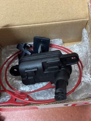 Actuador para el tapón del depósito de combustible de Audi. Pieza negra con detalles rojos. - Actuador de plástico negro. - Incluye precinto rojo.